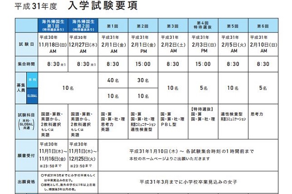 同校のホームページに2019年入試の要項が掲載されていますので、詳しくはこちらをご覧下さい。