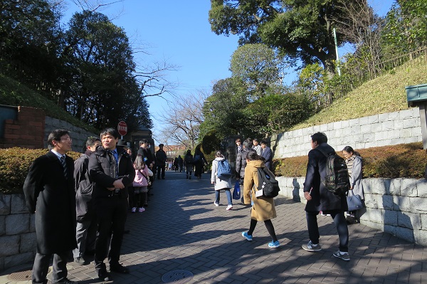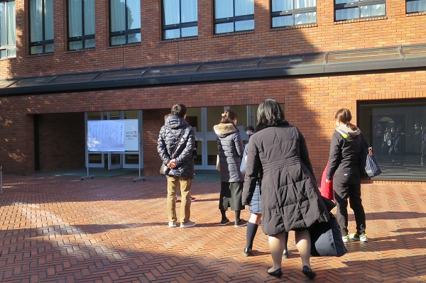B時程の受験生は14時以降に試験会場へ入ることができますが、保護者といると落ち着くのでしょう。しばらく親子で離れずにいる姿もありました。
