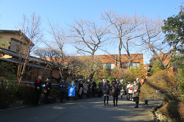 A時程の受験者数はおよそ150名。13時に開門すると次々と受験生がやってきます。各塾の先生方も左右にズラリと並び花道を作って激励する様子は、やはり注目度の高さ故でしょう。