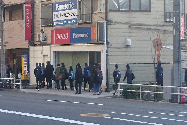 7時30分すぎから、検査会場へ向かう受検生と保護者の方の姿が見られるようになります。日曜日の朝8時前とあって、駅から降りてくる人のほとんどが受検生と保護者の方でした。まだ車もそれほど走っていません。