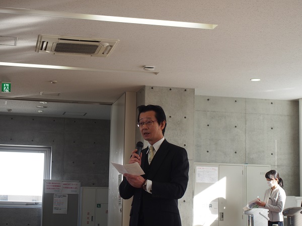 その頃、富士山が望める最上階のラウンジでは、待機する保護者に向けて校長先生が激励の挨拶。ここまで頑張ってきた受験生と保護者の努力を労います。