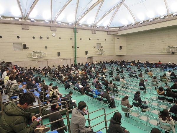 例年、海城の入学試験は2月1日と2月3日の2回実施されています。今年の出願者数は第1回入試(2/1)が508名、第2回入試(2/3)が1,218名となりました。両日ともに昨年度の出願者数(第1回が463名、第2回が1,094名)を上回り、特に2日目の今日は倍率8.4の厳しい入試となりました。