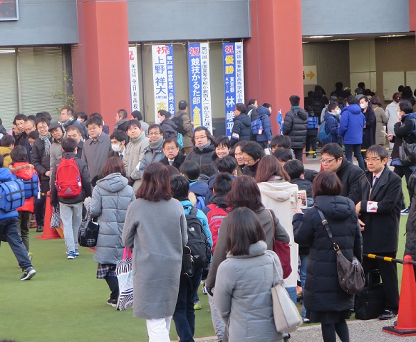 正門を抜けると、早朝からスタンバイしていた進学塾の先生たちが教え子を励まそうと花道を作って待っていました。