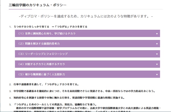 本校では、今後の社会情勢を鑑みまして、英語教育はますます重要になると考え、ここ数年は特に海外研修や校内での四技能育成に力を入れて参りました。小学校で英語教科化を受けて、今般英語を使った入試を実施し、入学後は取り出し授業、習熟度別授業などでさらに知識・技能を磨いていく所存でございます。