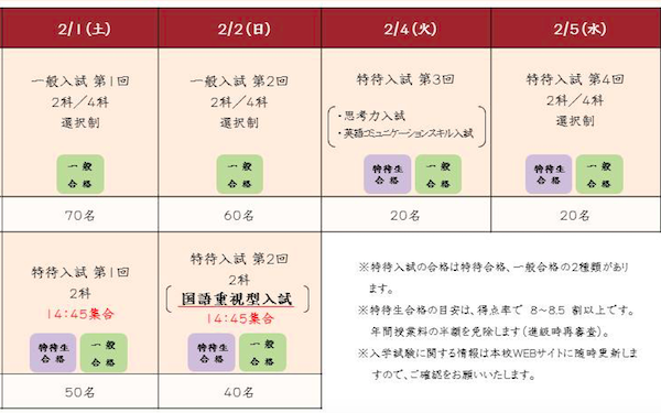2020年入試日程等、概要は下記のとおりです。
