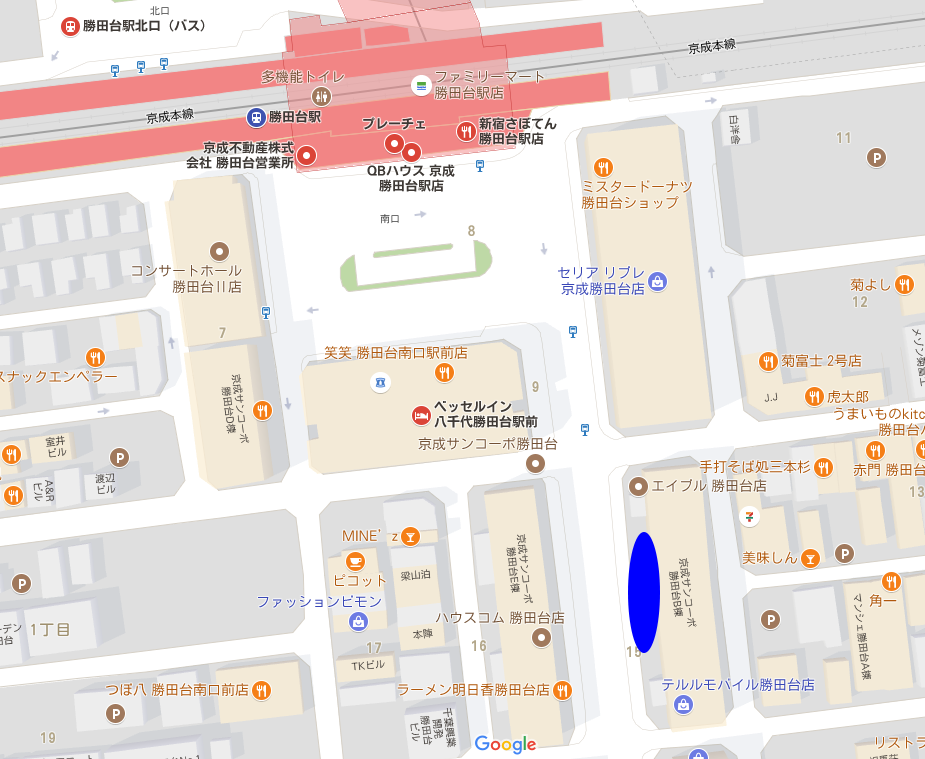 「勝田台」7:40~8:30随時出発(学校まで15~20分)