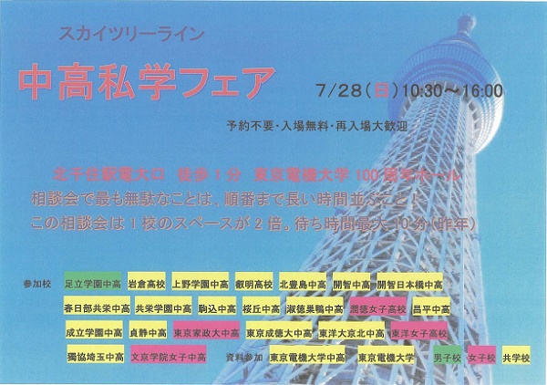 7月28日(日)には「スカイツリーライン 中高私学フェア」に...