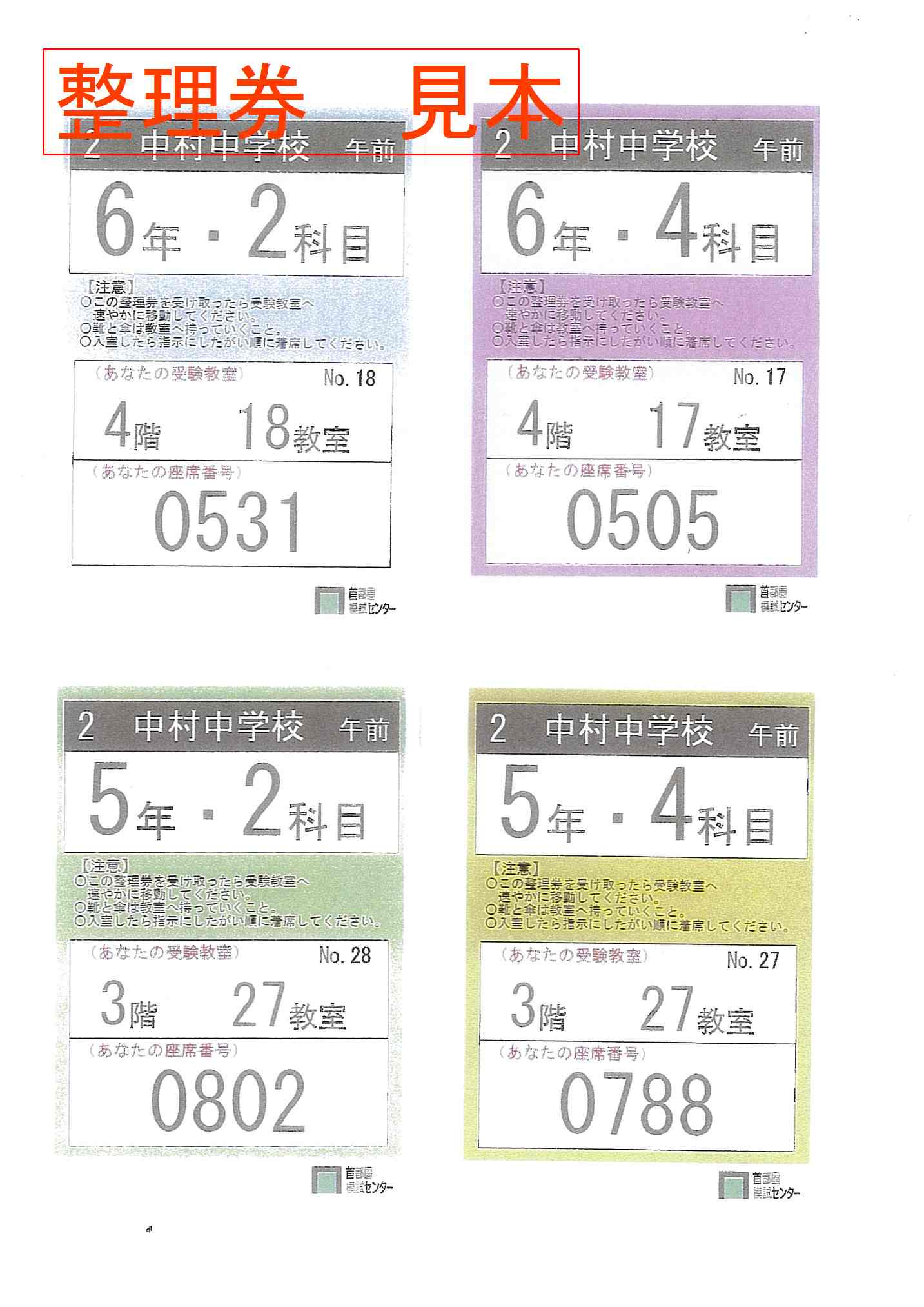 教室の机には座席シールが置いてあります。教室へ入ったら、座席シールに書いてある番号と同じ机に着席してください。