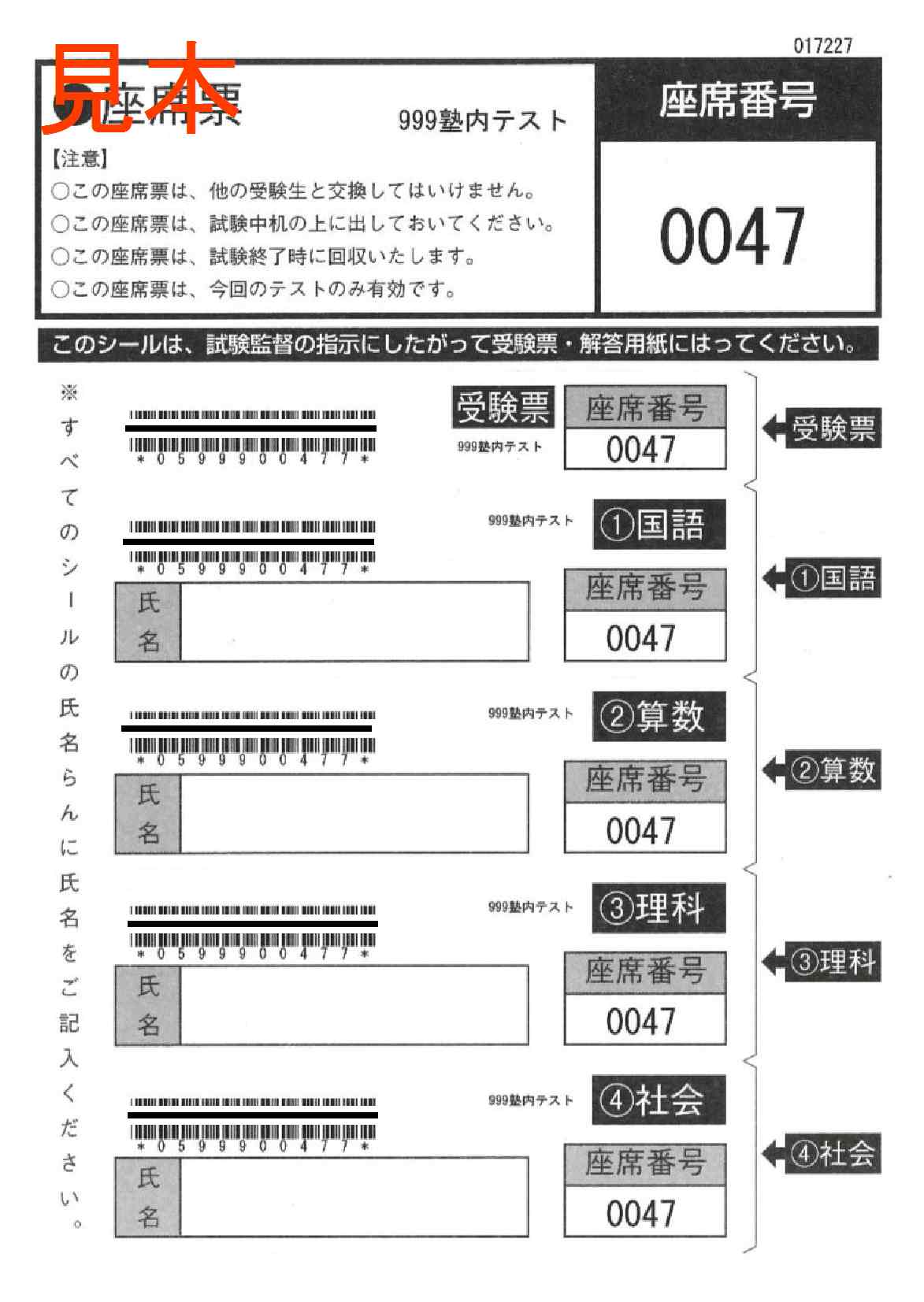 座席表シールに氏名を記入し、受験票に貼り付けるよう試験監督から指示がありますので、その指示に従ってください。