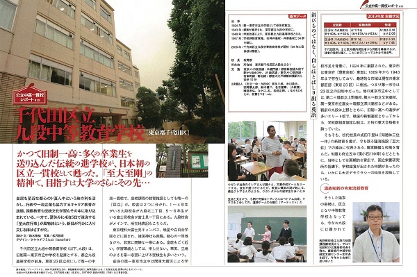 首都圏模試センター「公立中高一貫校模試」の受検生にお渡ししている「解答と解説」冊子『ブレイク』(原寸はB5判)に、2018年9月から連載している「公立中高一貫校レポート」の掲載記事を、順次ご紹介していきます。今回は「公立中高一貫校レポート」第10回〈#10〉千代田区立九段中等教育学校[東京都千代田区]。2019年9月23日号の『ブレイク』に掲載されたものです。