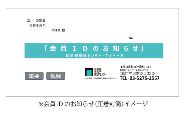 塾から初めてお申込みをする方はテストお申し込み後、塾から配布される『会員IDのお知らせ』がお手元に届いてからマイページを開設してください。(実施日の約1週間前に塾到着)