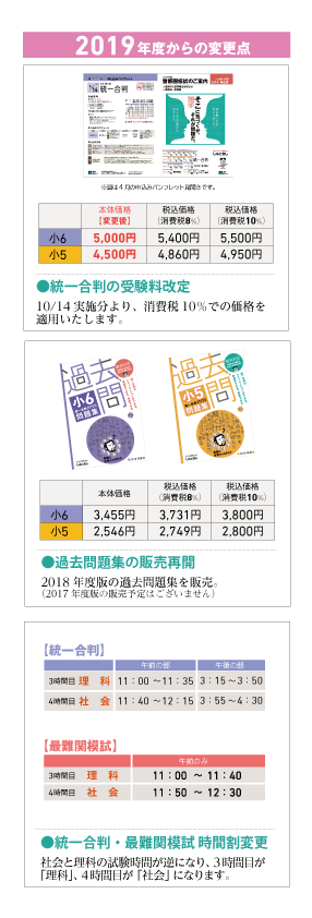 ●統一合判の受験料改定
