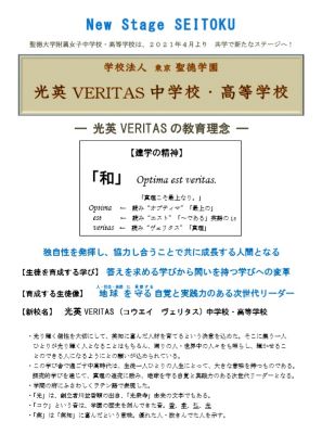 聖徳大学付属女子中学校・高等学校(千葉県松戸市)は、2021年4月より共学の進学校をめざして生まれ変わります。この度、新校名が発表されました。「光英 VERITAS (コウエイ ヴェリタス) 中学校・高等学校」です。