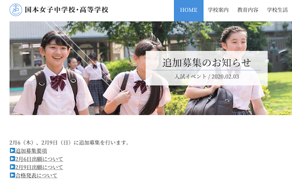 2020年入試の2次募集がありますので、まずは学校ホームページをチェック、さらに詳しく知りたい場合は、学校までお問い合わせください。