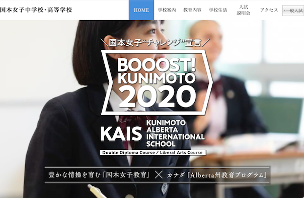 2020年4月より、国本女子は大きく変わります。カナダ・アルバータ州教育省と提携し、中学校・高等学校に、“KAIS”(Kunimoto Alberta International School)を開校し、「ダブルディプロマ コース」(DDコース)と「リベラルアーツ コース」(LAコース)を開設。これによりグローバル一貫教育校WO目指すものです。世界水準の英語力を身につけるDDコースと、創造力を養うLAコースNO2コース制で、生徒一人ひとりの進路選択の幅を広げます。