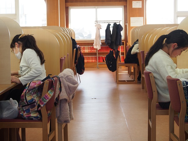 受験生には、発表カード、テーマ一覧が書かれた問題用紙、調べたテーマをまとめるB4サイズの紙が渡されます。テーマをインターネットで調べる際に使うタブレットPCが1人1台使えます。自分のスマートフォンなどを使うこと、外部との連絡を取ることは禁止ですが、それ以外はほとんど自由です。