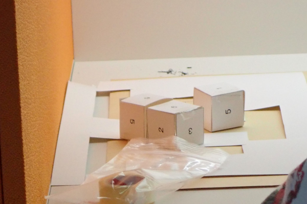 試験終了後、サイコロ、切り抜いたあとの厚紙、問題用紙(メモ用紙)、解答用紙(発表用ポスター)、すべて受験番号や氏名を記入したうえで提出します。