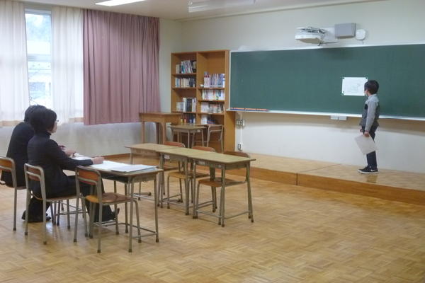 まずは、黒板に自分が事前に作成してきた紙を貼り、プレゼンテーション開始です。モノレールを通そうとする地域を具体的に挙げ、なぜそこにモノレールが必要なのか、なぜ電車ではなくモノレールなのかを一生懸命試験官に説明していました。実際にその地域を自分の足で歩き、そこの場所の高低などを資料で調べあげていて、聞いているこちら側がうんうんと納得できるようなプレゼンテーションでした。