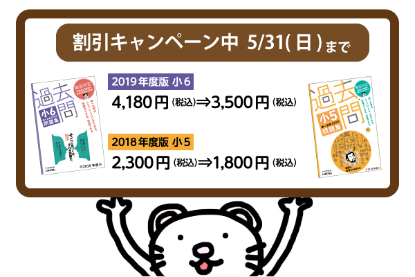 【受験生応援企画‼】2019年度版・小6と2018年度版・小5の過去問題集を5/31(日)まで割引キャンペーン中です。是非この機会にお買い求めください。