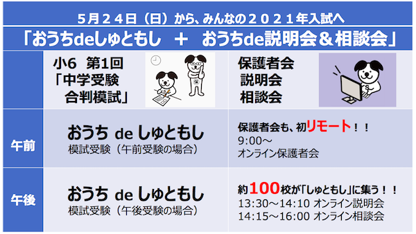 5/24 小6合判同日、私立中100校と「おうちde説明会&相談会」!!