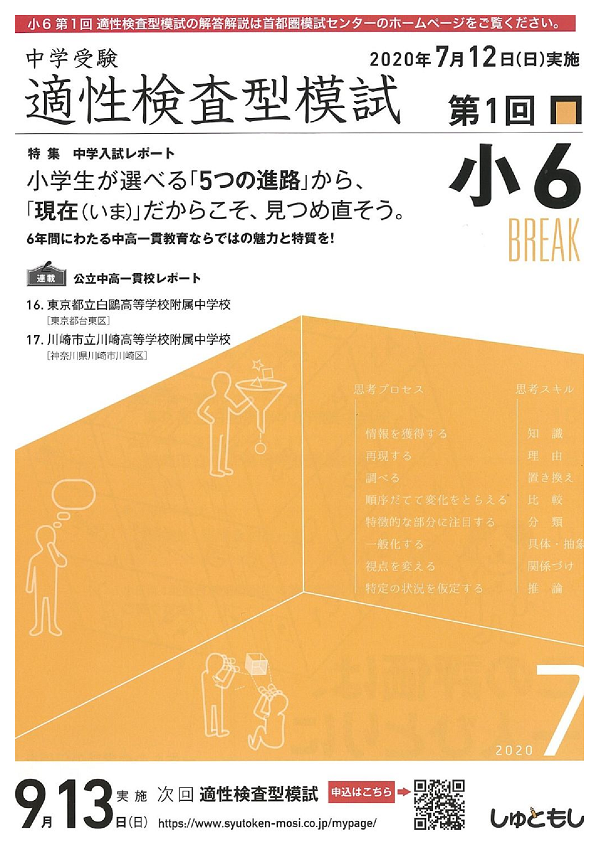 首都圏模試センター「適性検査型模試(昨年までは「公立中高一貫校模試」)」の受検生にお渡ししている「解答と解説」冊子『ブレイク』(原寸はB5判)に、2018年9月から連載している公立中高一貫校レポート」の第17回〈#17〉川崎市立川崎高等学校附属中学校[神奈川県川崎市]。2020年7月12日号の『ブレイク』に掲載されたものです。
