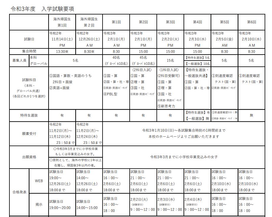 2021年入試の入試要項が同校ホームページで公開されています。