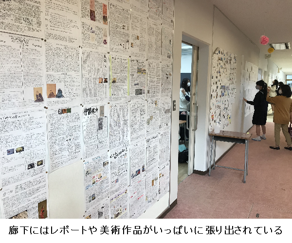 校舎のいたるところに生徒たちの作文やレポートや美術作品が展示されている。優秀な作品だけを張り出すのではなく、全員の作品を貼り出す。クラスメイトの傑出した作品を見て、刺激を受け、次回は自分ももう少し頑張ろうと思う。友達を自分の映し鏡として、相乗効果が働くのだ。