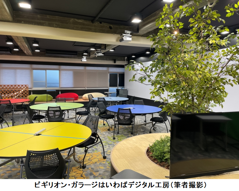 創立当初からの校舎の躯体はそのままに、要所要所をいまどきの空間にリニューアルしていったのだ。SCLのリラックスできる空間で、調べ物をしたり、語り合ったりしながら、新しい発想を萌芽させ、ビギリオン・ガラージでそれを形にし、PRHで発表する。生徒たちはまるで21世紀を代表するTech系企業の住人ようである。いっそ制服もデニムとTシャツにしてしまえばよいのではないかとさえ思う。