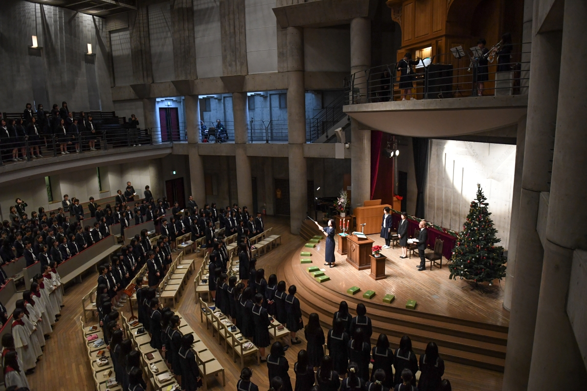 毎朝礼拝から1日を始める。写真はクリスマス礼拝(学校提供)