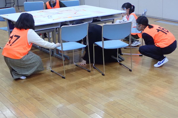確かにワクワクするような、会場に流れる明るい音楽が、知らず知らずのうちに、頭と心を柔らかくしてくれたようです。自己紹介やミニゲームでもほぐれなかった最後の小さな塊が、「ナゾ解き」に入ってから瞬く間に消えて、チームのメンバーの親密感がグググググッとアップしていくのが手に取るよう分かります。「親密になってから、すぐに行動に移っているのは、大人との違い」とSCRAP担当者を唸らせました。