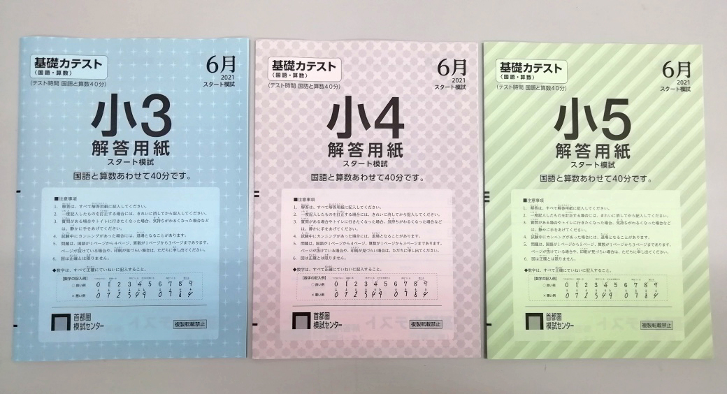 学年ごとの問題用紙の色は 小3:青色 小4:桃色 小5:緑色 となります。