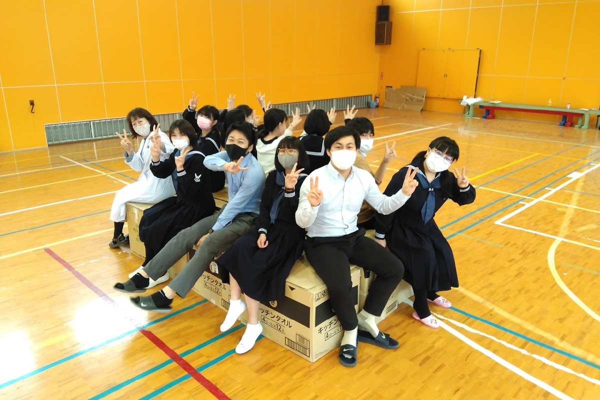 みんなで作製してみたダンボールベッド(学校提供)