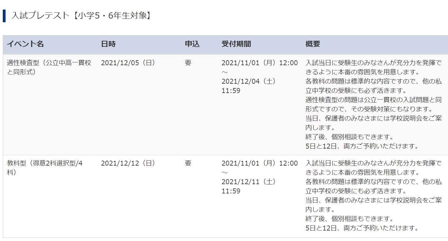 12月5日(日)のプレテストでは、適性検査型で行われ、桜修館などの公立中高一貫校の対策にもなります。12月12日(日)のプレテストでは、教科型(2科4科)で行われます。受験生がプレテストを受けている間には、保護者向けの学校説明会があります。また、プレテスト終了後には個別相談も行えます。