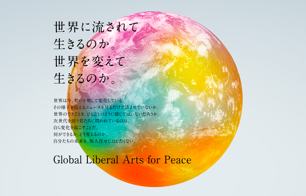 そんな新しい時代に誕生したグローバル・リベラルアーツ(GLA)学部は、Global Liberal Arts for Peace(平和のためのグローバル教養)を掲げ、世界の平和のために行動できる人を育てる教育を行っています。2回の海外留学で世界のリアルと世界の知恵にふれ、Humanities・Societies・Global Studiesという三つの分野でリベラルアーツを学び、世界に通用する教養力を身につけていきます。新しい時代の新しい世界で、これからの「平和」をグローバルな視点で実現するための力を培うのです。