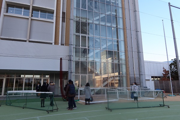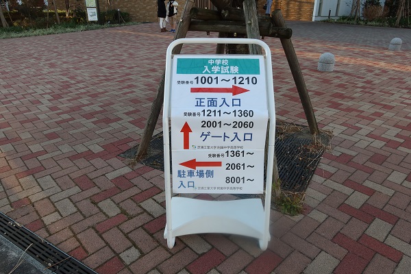 受験生の集合時間は8時30分で、開門は7時30分ですが、7時20分頃に学校へ到着すると、正面エントランスにはすでに50組ほどの受験生親子が整然と並んでいました。