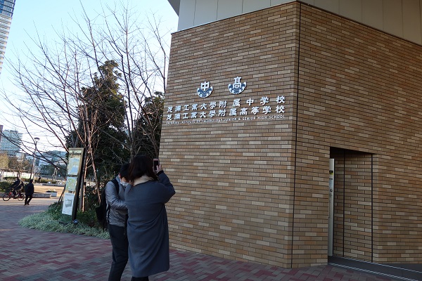 その様子はといえば、多くががんばりの成果を精一杯出すだけという自信と、春からこの学校で学ぶのだというワクワク感にあふれ、晴れ晴れとしています。中には校舎をバックにスマホで記念撮影する受験親子の姿も。