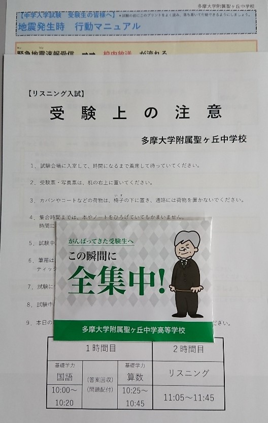 2/4(金)午前、2年目になる多摩大学附属聖ヶ丘中学校(共学校)の『リスニング入試』が実施され、27名の受験生が受験しました。同校の『リスニング入試』は、基礎学力の国語・算数(各20分)、リスニング(40分)が行われます。