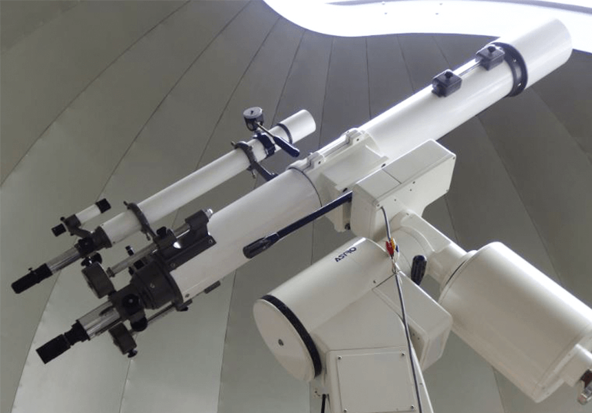 理科の授業では、天体観測室で口径12.5cmの屈折式赤道儀式望遠鏡が使われています。また体育では、室内温水プールで季節を問わず1ヶ月の水泳の授業が展開されています。グランドも現在は工事中ですが、鮮やかなフレッシュグリーンの人工芝に張り替えられています。