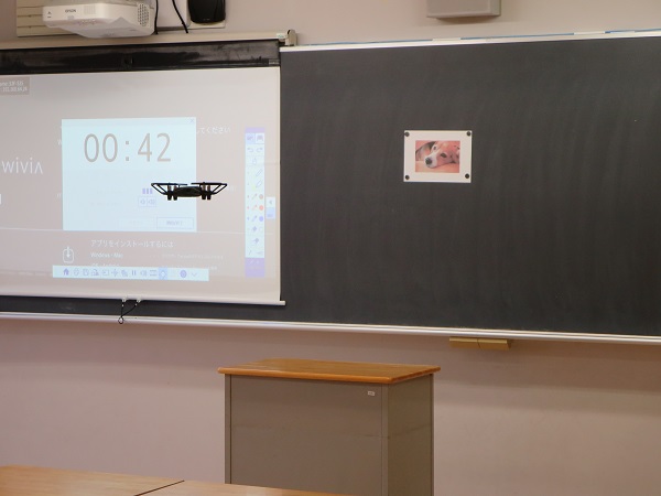 プログラミング実習では、ドローンを用いた3つの課題に取り組むことになります。与えられた課題は、ドローンに指定の動きをさせるプログラミングを作ることだったり、黒板に貼られている犬の写真をドローンで空撮することだったりします。試験の評価基準は、自己PRプレゼンテーション入試と同様、事前に受験生に公開されています。
