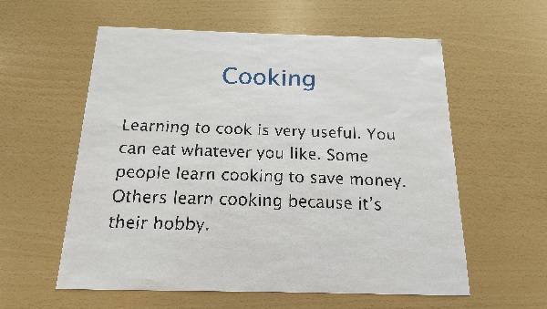 こちらの学校の英語入試は英検3級のテストと同程度で、質問を聞き取り理解しているか、自分の言葉で話せるか、読む力はあるかを測っています。