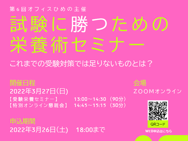 【外部主催】3/27開催 試験に勝つための栄養術セミナー のご案内