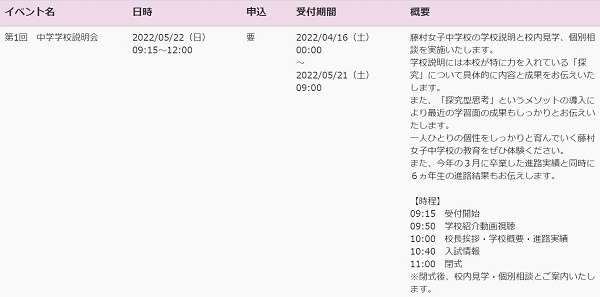 中学学校説明会