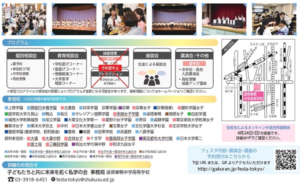 生徒がプロデュースする合同説明会「フェスタTOKYO」が6月5日(日)に淑徳巣鴨中学高等学校で開催します。