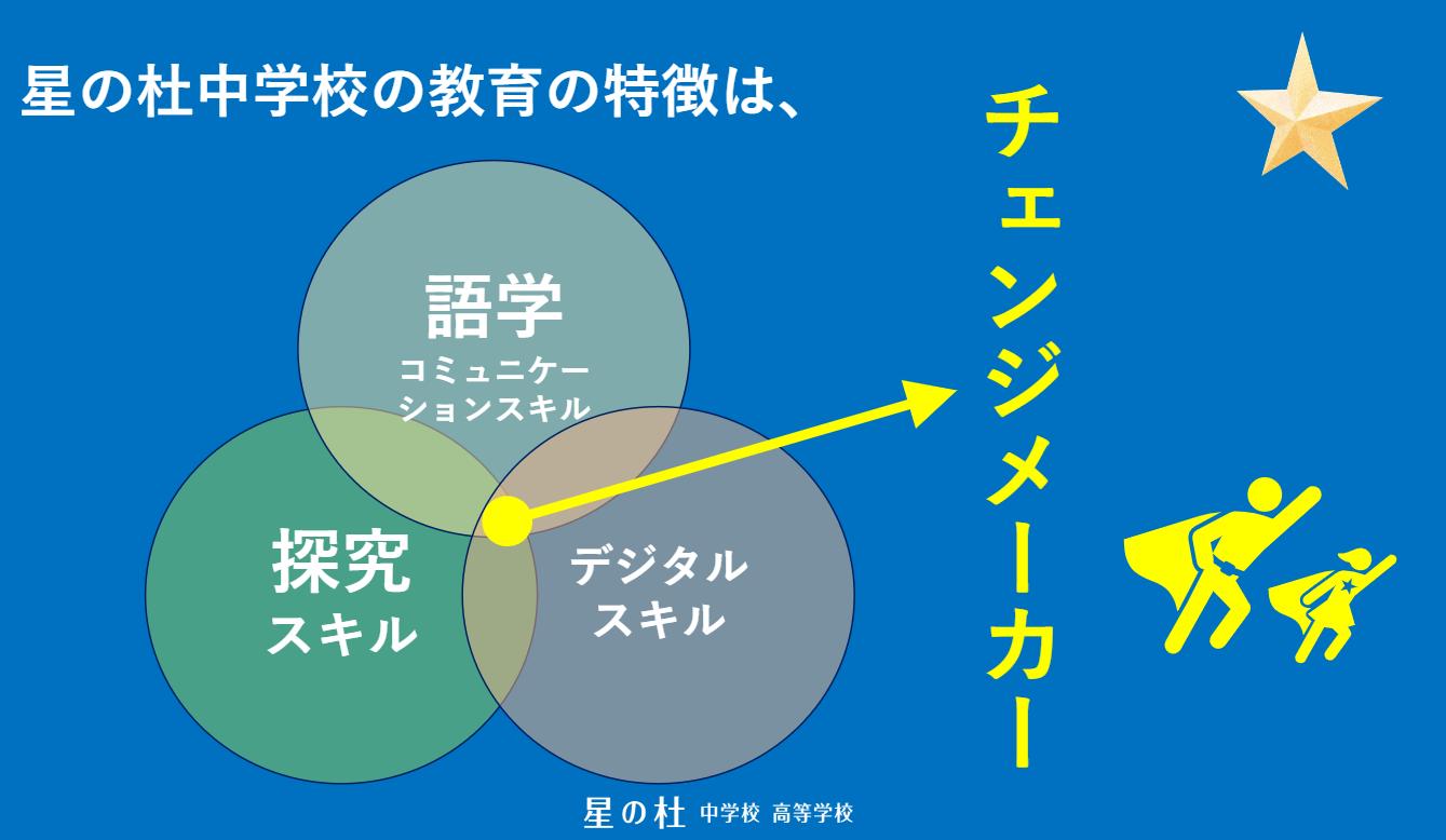 星の杜の教育は、これからの社会における諸問題に対応し、20年後・30年後の未来を見据えて、本当に社会に出て必要とされる資質・能力の育成を目指しています。星の杜では、そのような資質・能力を兼ね揃えられてこそ「チェンジメーカー」だと考えています。