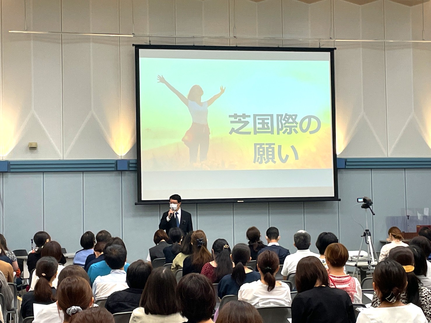 写真:芝国際(現・東京女子学園)中学校高等学校会場【三田NNホール】で実施した学校説明会 新校長山崎達雄先生の講演