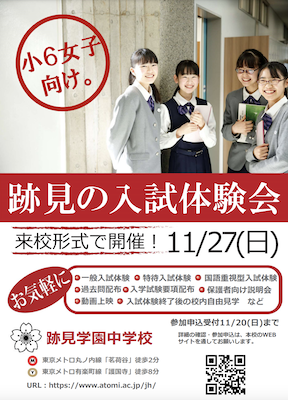 跡見学園では、11月27日(日)に入試体験会が開催されます。
