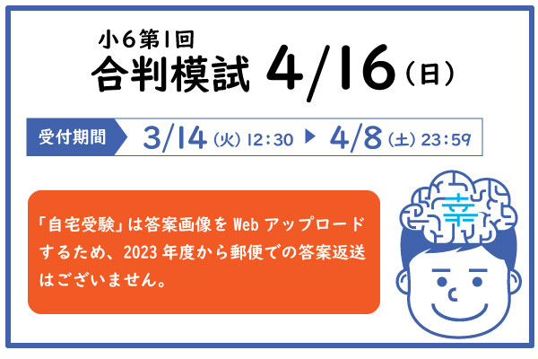4/9(日)12:30~4/11(火)23:59まで「自宅受験」「塾内受験(通塾生)」の受付を行います。