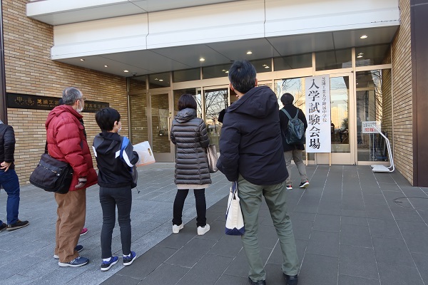 先生方が思っていた通り、入試当日も混雑や混乱は見られず、受験生たちは正面エントランス前で別れた保護者から見送られ、次々に整然と校内へと入っていきます。