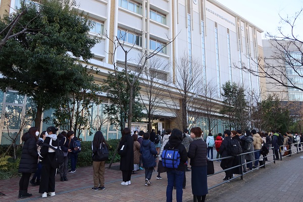 なお、2021年度と22年度入試では、入場時の密を避けるべく受験生入口を3か所に分散させていましたが、今年度入試はそれ以前同様に戻し、全員が正面エントランスからの入場となりました。