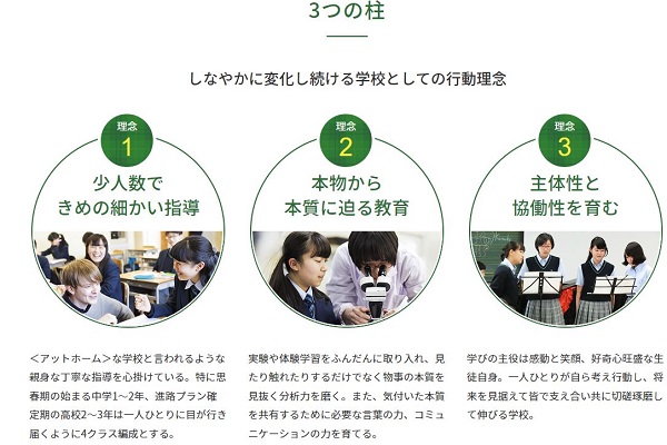 同校は3つの柱を教育理念に掲げています。